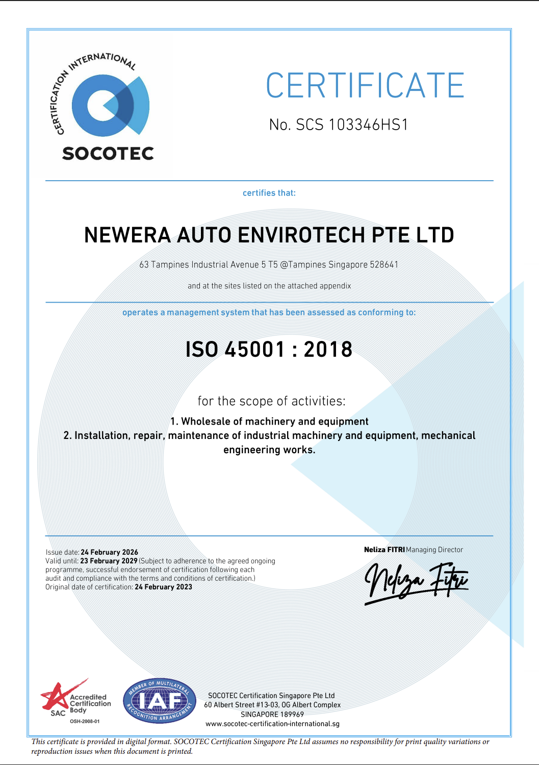 Newera Auto Envirotech Pte. Ltd. is a business unit of Newera Group established in 2007. We are committed to being a major provider in supplying high quality equipment, materials and tools to the automotive, aerospace and fabrication industries.